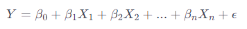 회귀분석에서 가장 기본적인 형태는 선형 회귀분석입니다. 선형 회귀의 일반적인 수식은 다음과 같습니다:
